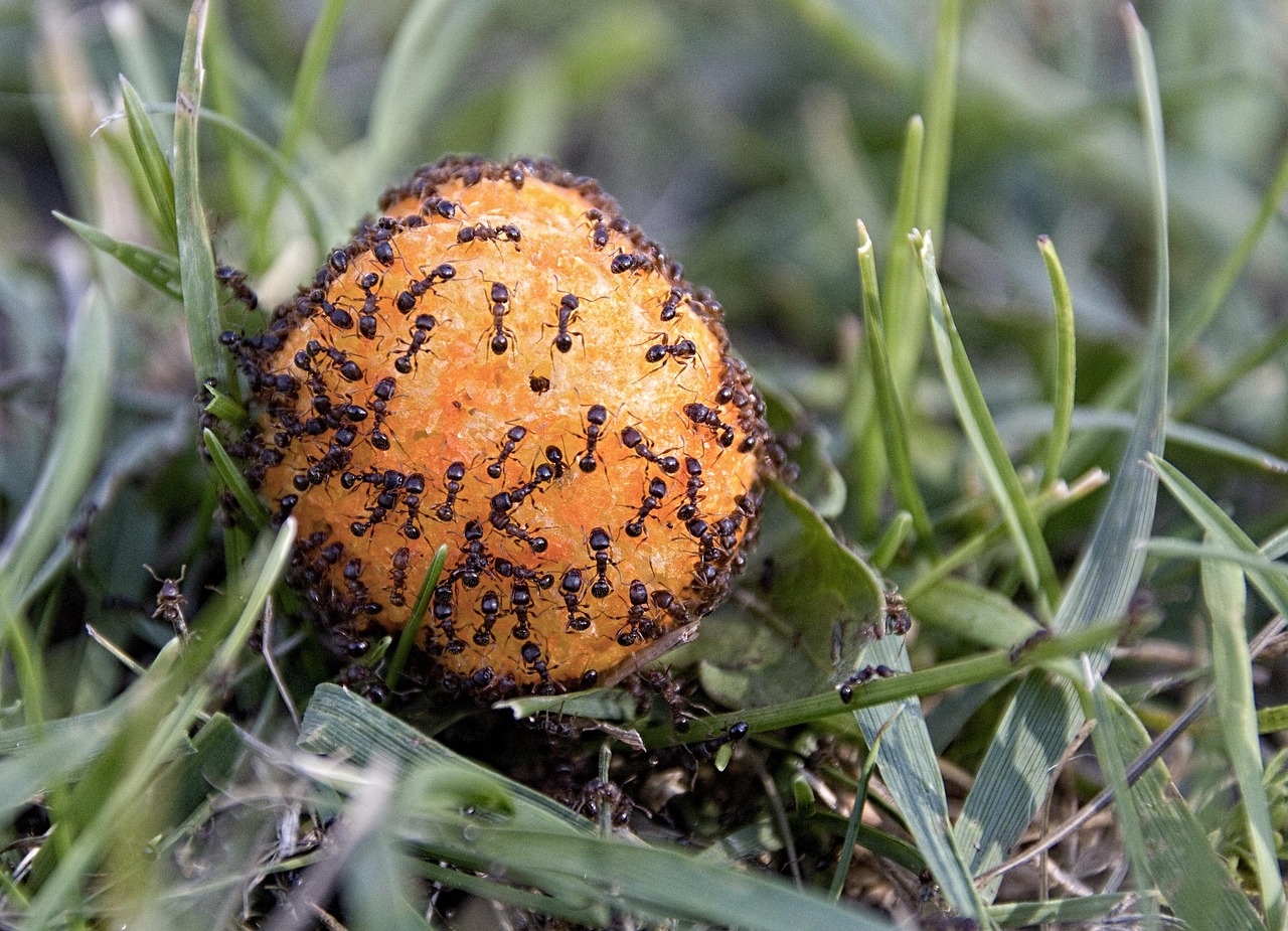 Fourmis sur un fruit tombé sur le solCes deux éléments forment une véritable réserve énergétique pour les fourmis, qui les ramènent ensuite dans leur fourmilière. C’est ce comportement que l’on peut observer lorsque les fourmis se déplacent en file indienne sur les tiges ou le sol. Heureusement, il est tout à fait possible d’interrompre cette chaîne alimentaire, naturellement et efficacement.
